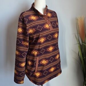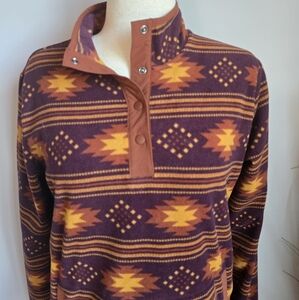 Duluth, Doubleback Southwestern Aztec 1/4 Snap Pullover Fleece Top, Size Medium