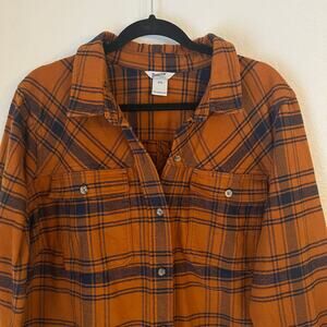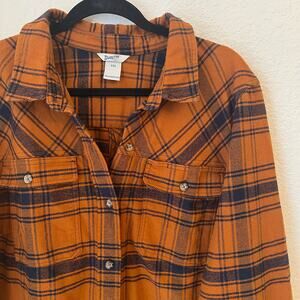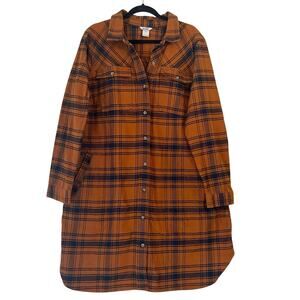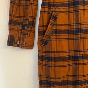 Duluth Folklore Flannel Duster XXL Shirt Jacket Shacket Button Up Orange Navy Plaid