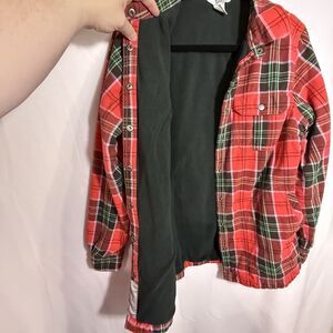 Duluth Free Swingin' Fleece Lined Neon Red Plaid Flannel Shirt Jacket Women's M Shacket Farming Hiking Outdoors Western Adjustable Snap Back Closure