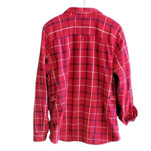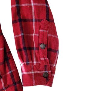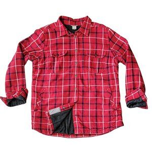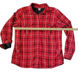 Duluth Trading Co. Free Swingin' Red Plaid Cozy Fleece Lined Snap Front Shirt Jacket Shacket