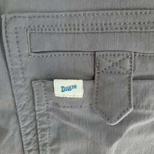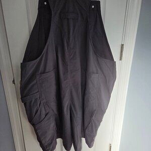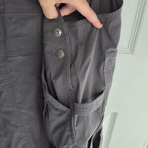 Used but in excellent condition. A few white spots in various locations. Unsure what they are from and haven't been able to remove. Not easily noticeable. I only used for gardening. Sooooo many pockets for phone, tools, etc. Lost weight and they are now too big.