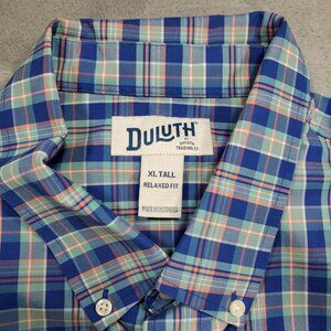 Duluth Long Sleeve Button Down Plaid Shirt 1 Pocket Blue Teal Pink Men Sz XLT
