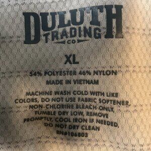The Duluth Trading Co striped polo, crafted for everyday comfort, is a lightweight blend of polyester and nylon. Its casual short-sleeve design and muted green and gray stripes pair versatile aesthetics with functionality, promising a relaxed fit for various settings. A dependable addition to your wardrobe, blending durability with understated style.