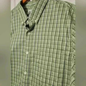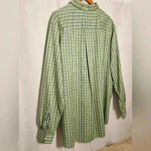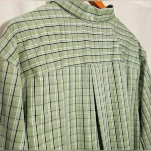 🛑 Duluth Mens Button-up 100% Cotton Light Green Collared Plaid Shirt Size 2XLT