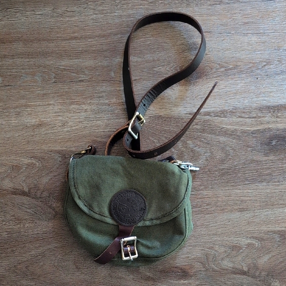 EUC green canvas crossbody bag with brown leather accents. Purchased from Duluth Pack when I lived in Minnesota. I never use it anymore, unfortunately.