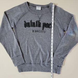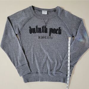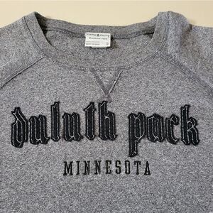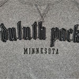 Grab this Duluth Pack long sleeve women's top for leisure time and weekend wear. This crewneck shirt in a relaxed cut is an all cotton black marled color with both Duluth Pack appliqued and Minnesota embroidered in solid black on the front.