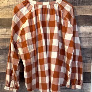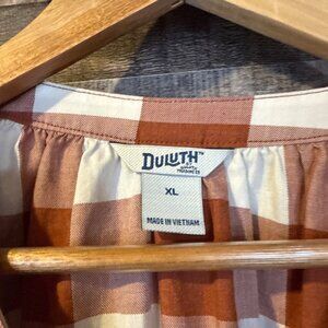 Duluth Rust & Cream Plaid Organic Cotton Button Up Blouse XL Fall Cottagecore