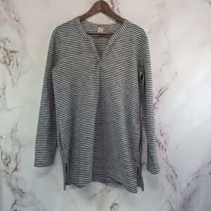 Duluth Shirt Womens Medium Gray Striped Ponte Pro Tunic Pullover V Neck