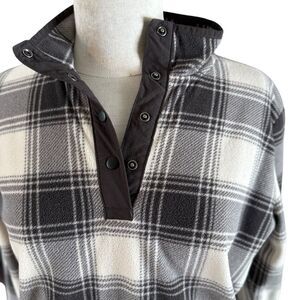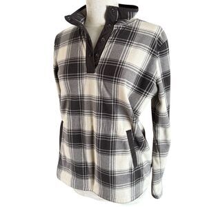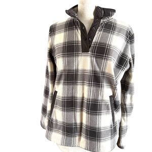 Duluth Sweater Womens Medium Black Plaid Pullover Fleece Pockets Casual Outdoor