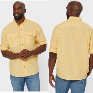 This shirt is made by Duluth Trading. It’s a solid yellow long sleeve that can be rolled and button to make short sleeves. Size large and in very nice pre owned condition. Color is closest to the close of the tag. Smoke and pet free home.
