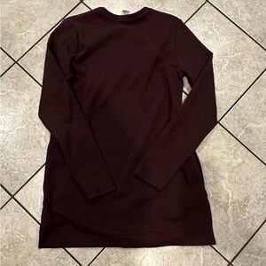 Stylish burgundy long sleeve tunic with pockets and vented sides. Perfect for any occasion. EUC