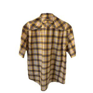 Duluth Trading Button Down Shirt Mens Size Medium Yellow Short Sleeve Polyester