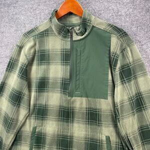 Duluth Trading Co. 1/4 Zip Fleece Pullover Men's Large Green Plaid Outdoors