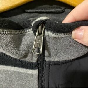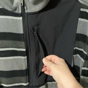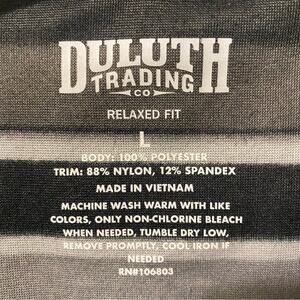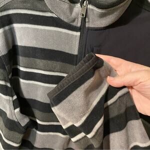 Duluth Trading Co. Black Gray Striped fleece quarter zip Pullover large relaxed