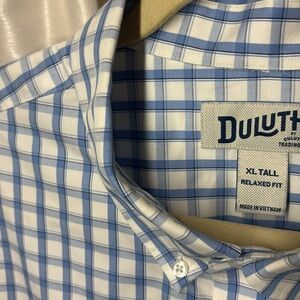 Duluth Trading Co Blue Plaid Men's big and tall dress shirt, xl tall, relaxed