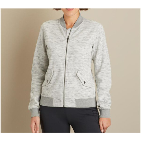 Duluth Trading Co Double Knit Bomber Jacket Women's Medium Light Heather Gray