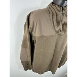 Duluth Trading Co Men's Mock Neck Knit Cotton/Wool Blend Sweater. Elbow Patches. Nylon Trim Detail. 1/4 Zip. Chest Zip Pocket. Brown.