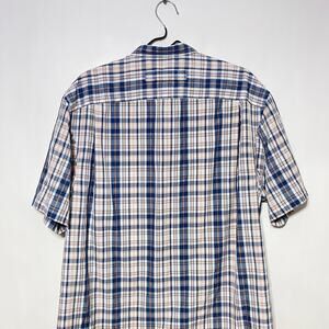 Duluth Trading Co. Button Down Shirt Mens Medium Blue White Plaid Short Sleeve