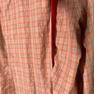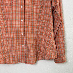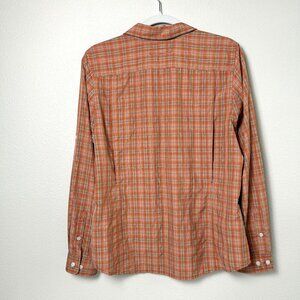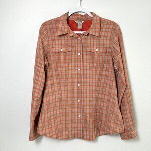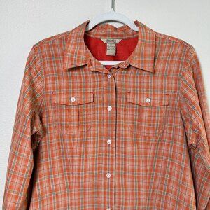 Duluth Trading Co Button Up Shirt Womens Size M Orange Plaid Roll Tab Fishing