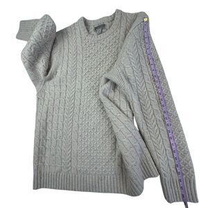 Duluth Trading Co Cream Cable Knit Crewneck Sweater