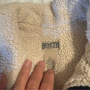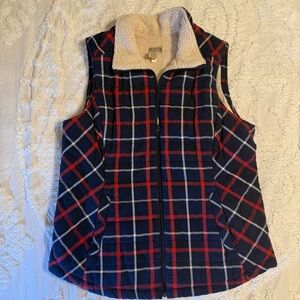Duluth Trading Co Cream Fleece Vest size Large Red/ Blue A24