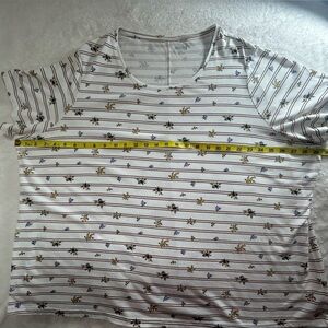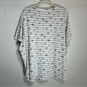 Duluth Trading Co Cream Short Sleeve Tee Blue/Gold Floral Brown Stripe Pattern