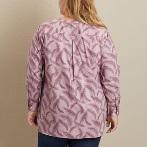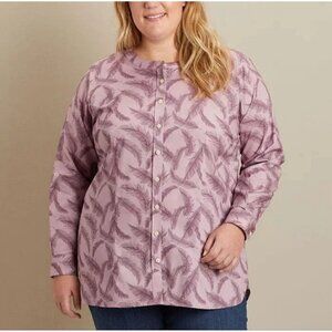 Duluth Trading Co Wrinkle Fighter Button Tunic Top Womens 2X Purple Feathers New