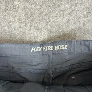 The Duluth Trading Co Flex Fire Hose Shorts in Men's size 46 are a durable and comfortable workwear option. Made of gray canvas fabric with a medium wash, these shorts feature a relaxed fit and a mid-rise waist. The flat front design, button closure, and cargo pockets make them practical for various occasions, while the machine washable material ensures easy care. Ideal for summer, fall, and spring, these shorts are a versatile addition to any man's wardrobe.