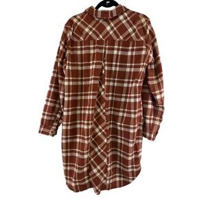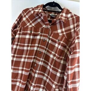Duluth Trading Co Folklore Flannel Duster Shirt Orange Plaid 56464 Womens Large.