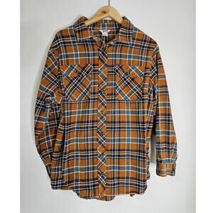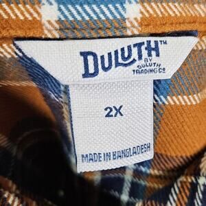 Duluth Trading Co Folklore Flannel Shirt Mustard Plaid Outdoors Workwear 2XL.