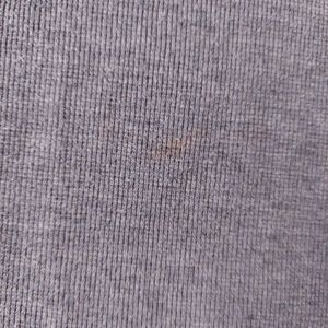 This shirt features a cotton blend. There are two spots that are stained, but it is very faint . No holes present. Please view images for measurements.