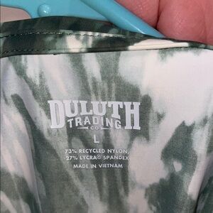 Embrace a relaxed style with this Duluth Trading Co blouse, featuring a graphic pattern in shades of green and white. The long sleeves and mandarin collar add a touch of elegance, making it a versatile addition to your wardrobe.
