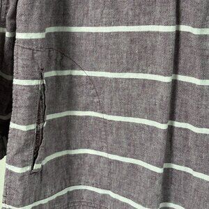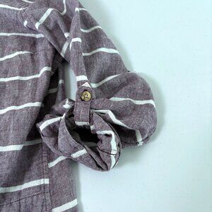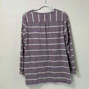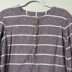 Duluth Trading Co Hemp Tunic Top Size L Purple Striped Henley Pockets Roll Tab