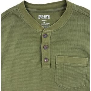 Duluth Trading Co Henley Mens Medium Olive Green Long Sleeve Pocket Shirt
