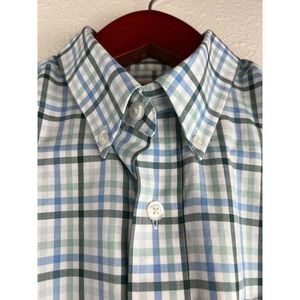 Duluth Trading Co. Large Trim Fit Blue Check Long Sleeve Button Up 100% Cotton