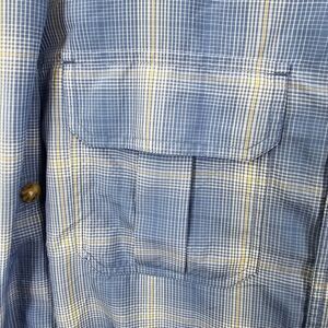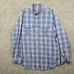 Duluth Trading Co Men's Blue Plaid Long Sleeve Button Up Roll Tab Size L Tall