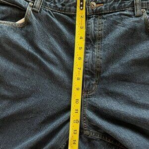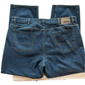 Duluth Trading Co Mens Dark Wash Denim Heavy Cotton Workwear Blue Jeans-44”x32”.