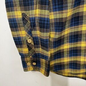 Elevate your casual wardrobe with this Duluth Trading Co Men's Free Swingin' Flannel. This button-up shirt features a plaid pattern with blue and yellow hues that exude a laid-back vibe. The long sleeves and collared neckline make it perfect for fall and winter seasons, while the relaxed fit provides all-day comfort. Crafted from soft cotton flannel fabric with a button closure, this shirt is machine washable and easy to care for. It also comes with pockets and accents for a functional touch. Ideal for outdoor-themed occasions, this shirt is a must-have for any man's wardrobe.
