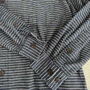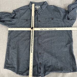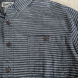 Duluth Trading Co Men's Free Swingin' Flannel Relaxed Fit Shirt blue & white stripes button down collar Item 52007 big & tall soft twice brushed cotton durable reach gussets