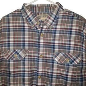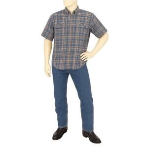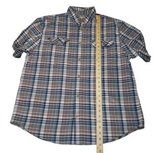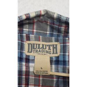 Duluth Trading Co. Men's L Plaid Work Shirt Short Sleeve Gray Blue Western