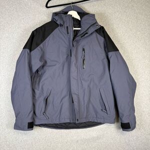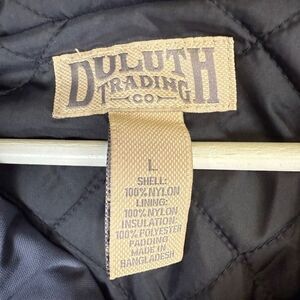 Duluth Trading Co. Men's Large Blue Black Hooded Rain Jacket Coat Quilted Lining
