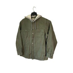 Duluth Trading Co. Mens Olive Green Flannel-Lined Cotton Jacket With Hood Size L