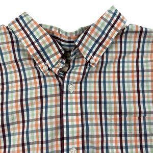 Duluth Trading Co Mens Shirt Sz 2XL Wrinkle Fighter Relaxed Fit Plaid Orange