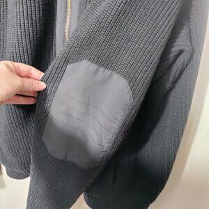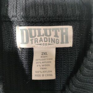 This Duluth Trading Co sweater is the perfect addition to any wardrobe. Made with a comfortable and warm blend of wool, cotton, and cotton blend, it features a full zip design with elbow pads and a mock neck. The sweater comes in black and is available in size 2XL.