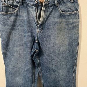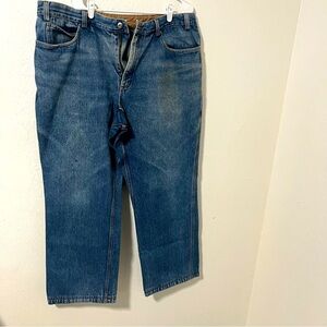 Duluth Trading Co Men's Size 44x32 Blue/Tan Inner Lining Relaxed Jeans Work