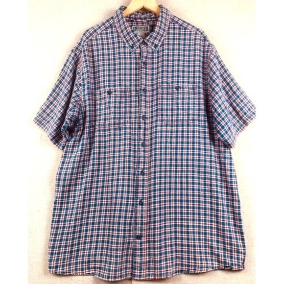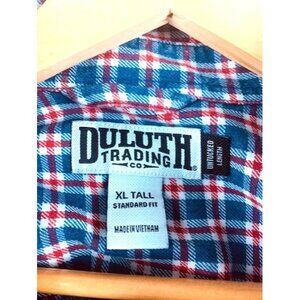 Duluth Trading Co Men's XL Tall Red & Blue Plaid Short Sleeve Button-Up Shirt