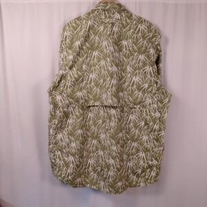 Keywords: Duluth Trading Co., Mens Shirt, Short Sleeve Shirt, Button Down Shirt, Bamboo Print, XL Tall, XLT, Casual Shirt, Outdoor Shirt, Green Shirt, Tropical Print, Breathable Shirt, Chest Pockets, Action Shirt