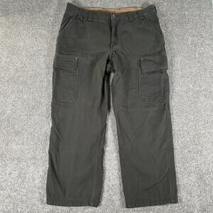 Duluth Trading Co Pants Men 40x30 Moss Green Fleece Lined Canvas Cargo Workwear