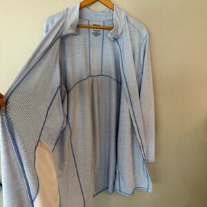 Duluth Trading Co Pier Genius Full Zip Tunic Swim Cover Blue Stripe 3X Plus UPF