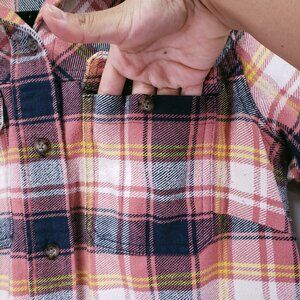 Duluth Trading Co Pink Folklore Flannel Duster Dress Plaid Button Up Size XS